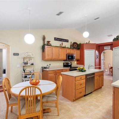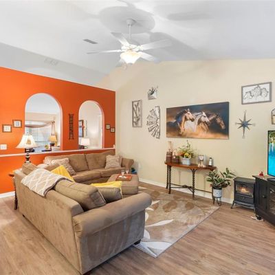 Cathedral Ceiling(s), Ceiling Fan(s), Eating Space In Kitchen, High Ceilings, In Wall Pest System, Kitchen/Family Room Combo, Living Room/Dining Room Combo, Primary Bedroom Main Floor, Solid Wood Cabinets, Thermostat, Walk-In Closet(s)