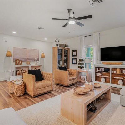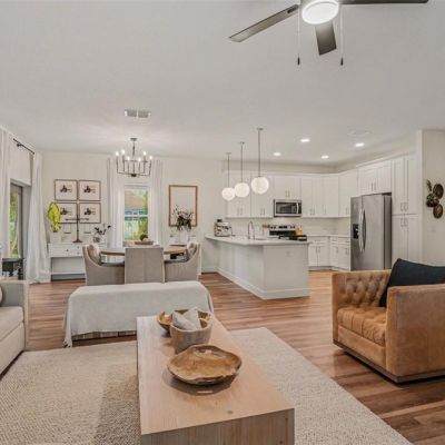 Ceiling Fan(s), Crown Molding, High Ceilings, Kitchen/Family Room Combo, Open Floorplan, Primary Bedroom Main Floor, Solid Surface Counters, Thermostat