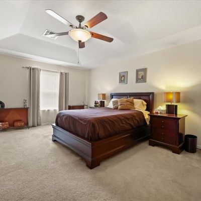 Ceiling Fan(s), Chair Rail, High Ceilings, Kitchen/Family Room Combo, PrimaryBedroom Upstairs, Solid Wood Cabinets, Stone Counters, Thermostat, Tray Ceiling(s), Walk-In Closet(s), Window Treatments