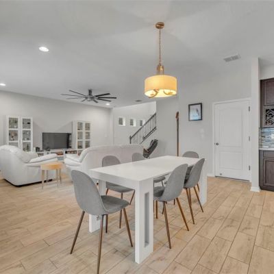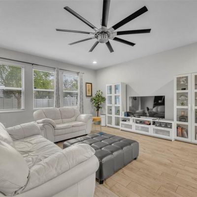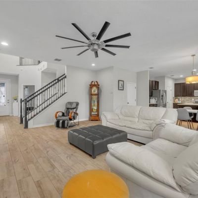 Ceiling Fan(s), High Ceilings, Kitchen/Family Room Combo, Open Floorplan, Stone Counters, Window Treatments