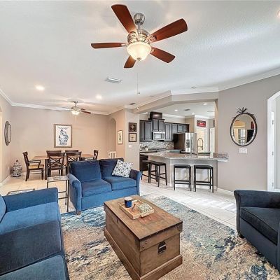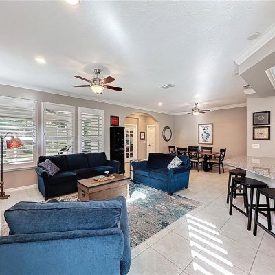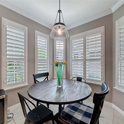 Ceiling Fan(s), Crown Molding, Eating Space In Kitchen, Living Room/Dining Room Combo, Open Floorplan, Primary Bedroom Main Floor, Solid Wood Cabinets, Split Bedroom, Stone Counters, Thermostat, Window Treatments