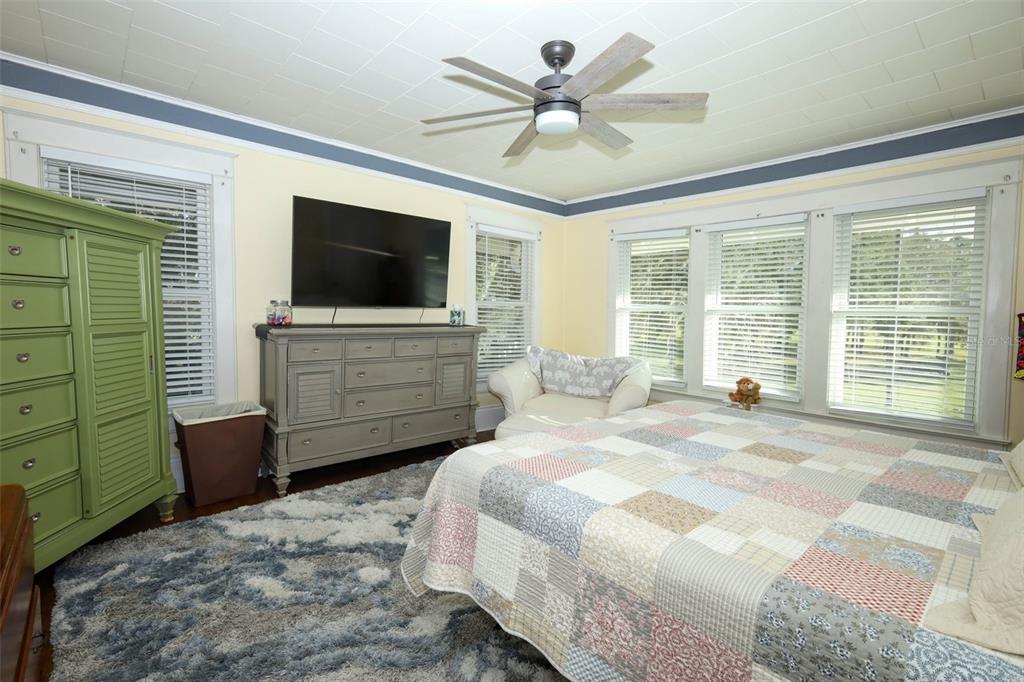 Built-in Features, Ceiling Fan(s), Chair Rail, Crown Molding, Eating Space In Kitchen, High Ceilings, Primary Bedroom Main Floor, Solid Wood Cabinets, Thermostat, Walk-In Closet(s), Window Treatments