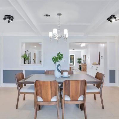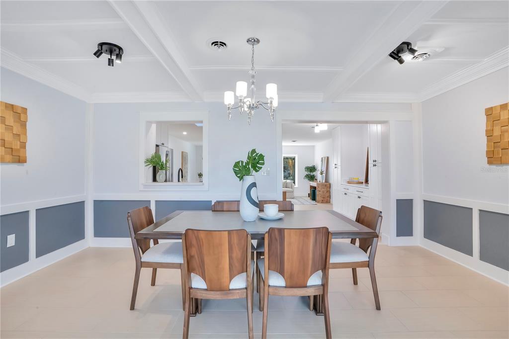 Built-in Features, Ceiling Fan(s), Coffered Ceiling(s), Eating Space In Kitchen, Stone Counters