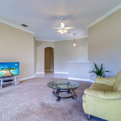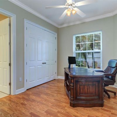 Ceiling Fan(s), Crown Molding, Eating Space In Kitchen, High Ceilings, Living Room/Dining Room Combo, Open Floorplan, Primary Bedroom Main Floor, Solid Surface Counters, Split Bedroom, Thermostat, Walk-In Closet(s), Window Treatments
