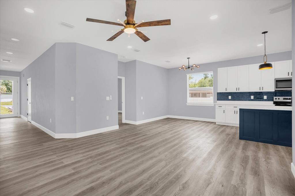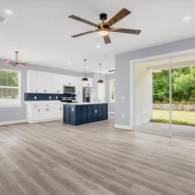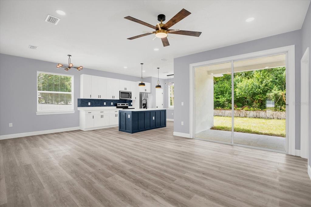 Ceiling Fan(s), High Ceilings, Kitchen/Family Room Combo, Open Floorplan