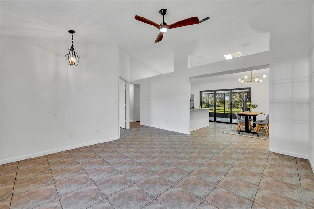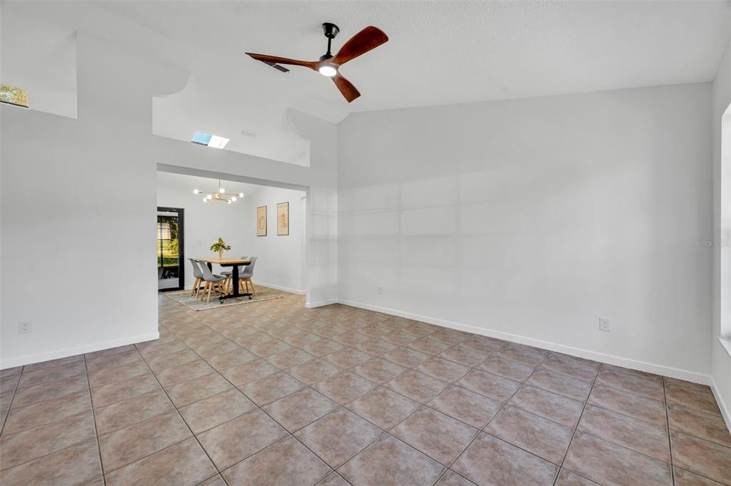 Ceiling Fan(s), Eating Space In Kitchen, Kitchen/Family Room Combo, Living Room/Dining Room Combo, Open Floorplan, Primary Bedroom Main Floor, Skylight(s), Solid Wood Cabinets, Split Bedroom, Stone Counters, Thermostat, Vaulted Ceiling(s), Walk-In Closet(s)