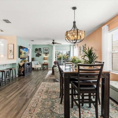 Ceiling Fan(s), High Ceilings, Kitchen/Family Room Combo, Living Room/Dining Room Combo, Open Floorplan, Primary Bedroom Main Floor, Split Bedroom