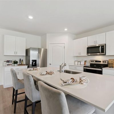 Eating Space In Kitchen, Kitchen/Family Room Combo, Living Room/Dining Room Combo, Open Floorplan, PrimaryBedroom Upstairs, Solid Surface Counters, Stone Counters, Thermostat, Walk-In Closet(s)