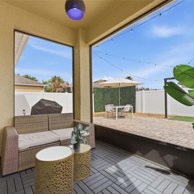 Courtyard, Fire Pit, Irrigation System, Lighting, Rain Gutters, Sidewalk, Sliding Doors