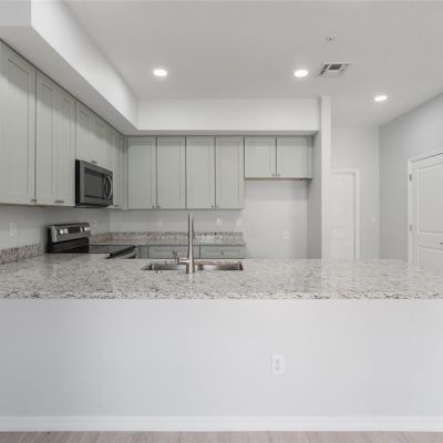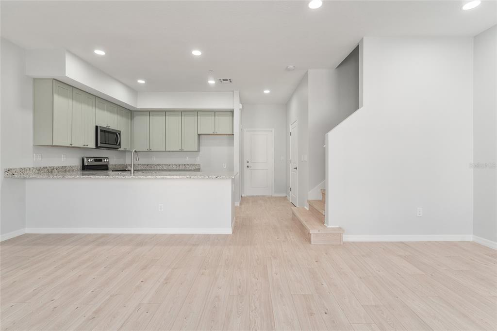 High Ceilings, Living Room/Dining Room Combo, Open Floorplan, Solid Wood Cabinets, Stone Counters, Walk-In Closet(s), Window Treatments