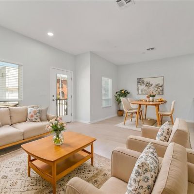 High Ceilings, Living Room/Dining Room Combo, Open Floorplan, Solid Wood Cabinets, Stone Counters, Walk-In Closet(s), Window Treatments