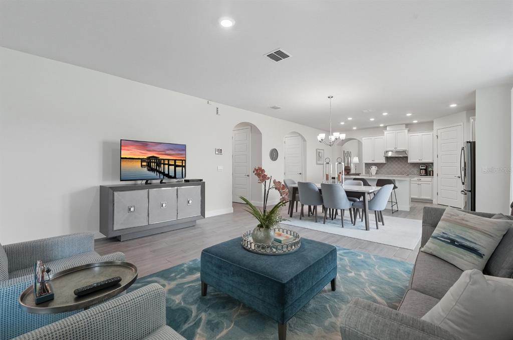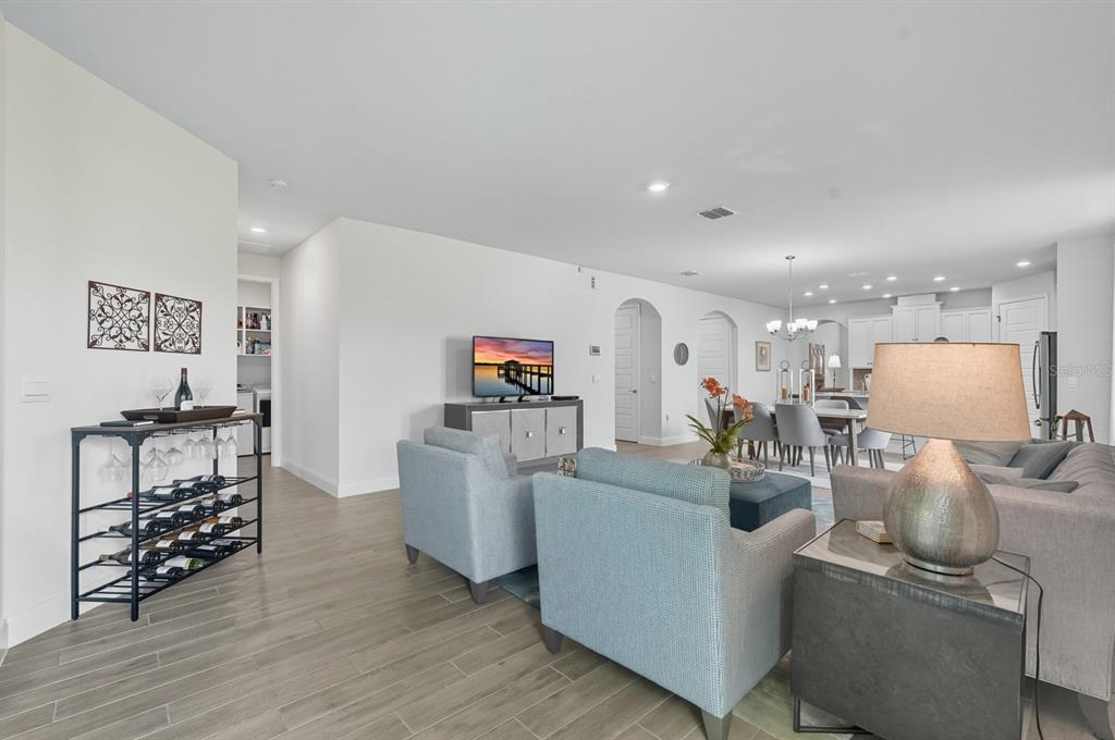 Open Floorplan, Primary Bedroom Main Floor, Solid Surface Counters, Solid Wood Cabinets, Split Bedroom, Stone Counters, Thermostat, Walk-In Closet(s), Window Treatments