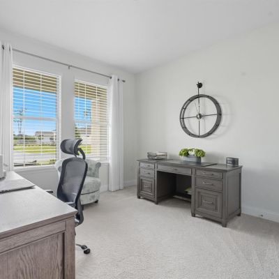 Open Floorplan, Primary Bedroom Main Floor, Solid Surface Counters, Solid Wood Cabinets, Split Bedroom, Stone Counters, Thermostat, Walk-In Closet(s), Window Treatments