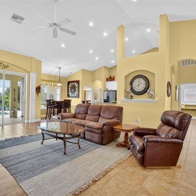 Ceiling Fan(s), Eating Space In Kitchen, High Ceilings, Primary Bedroom Main Floor, Thermostat, Vaulted Ceiling(s), Walk-In Closet(s), Wet Bar