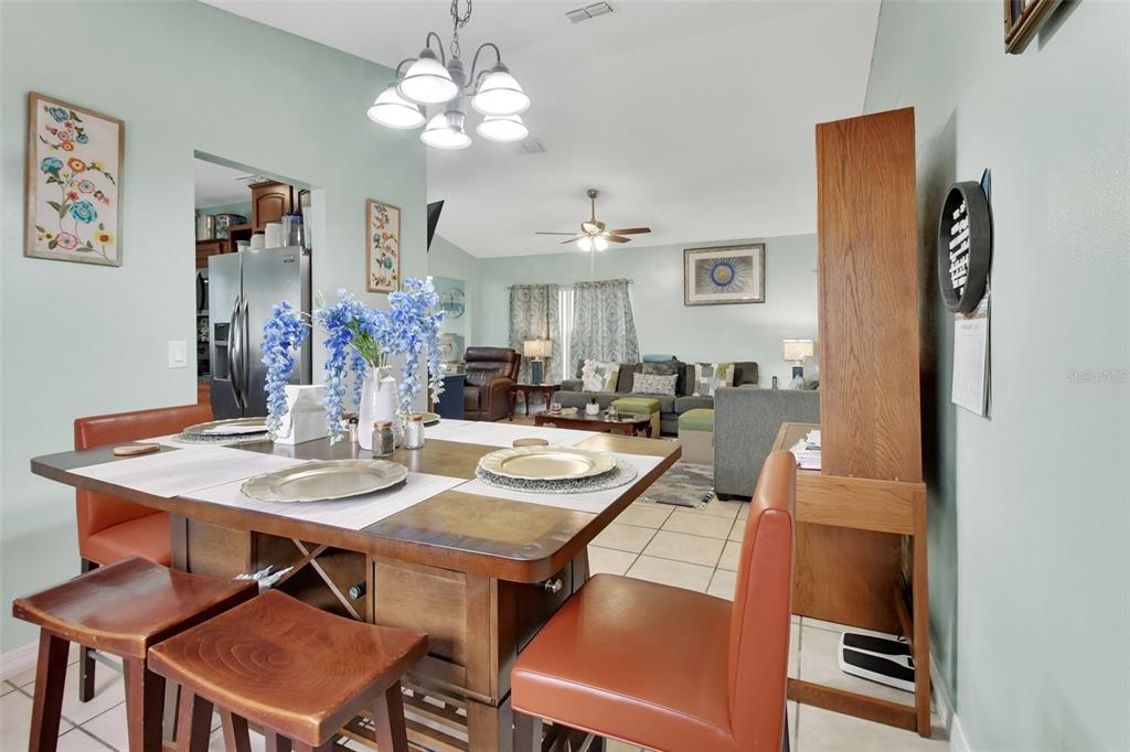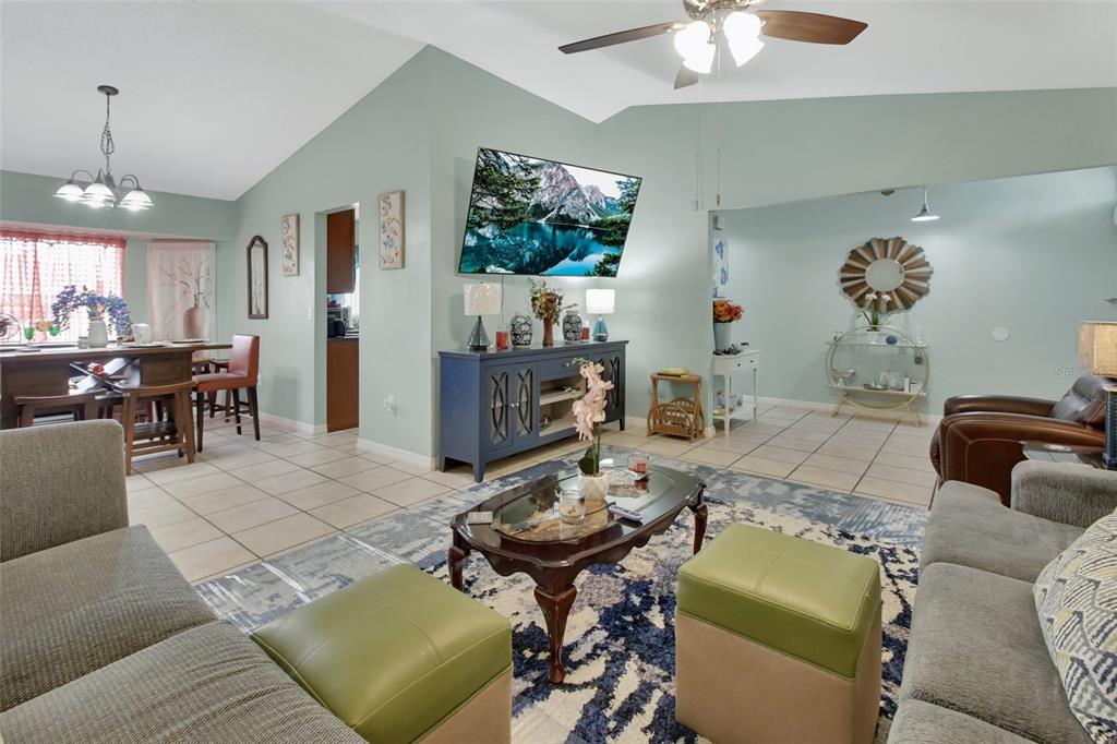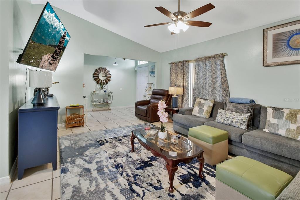 Ceiling Fan(s), Eating Space In Kitchen, High Ceilings, Living Room/Dining Room Combo, Solid Surface Counters, Thermostat, Vaulted Ceiling(s), Walk-In Closet(s), Window Treatments