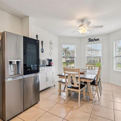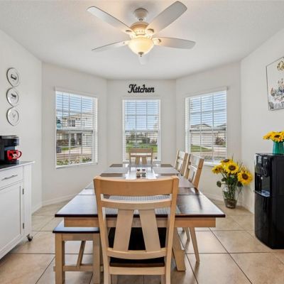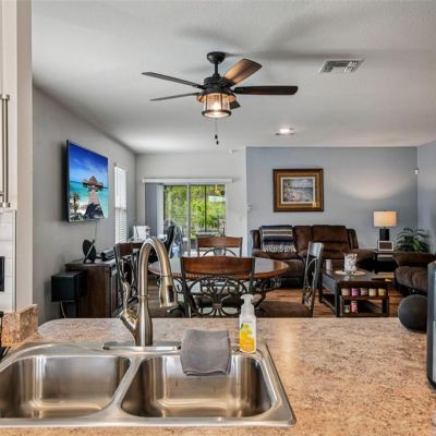 Ceiling Fan(s), Eating Space In Kitchen, High Ceilings, Living Room/Dining Room Combo, Open Floorplan, Thermostat, Window Treatments