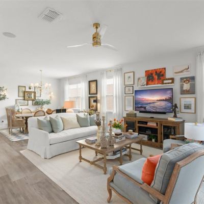 Ceiling Fan(s), Dry Bar, Eating Space In Kitchen, High Ceilings, Living Room/Dining Room Combo, Open Floorplan, Split Bedroom, Tray Ceiling(s), Walk-In Closet(s)