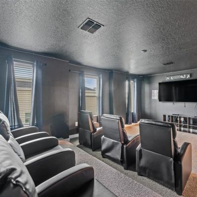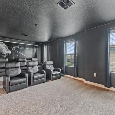Built-in Features, Ceiling Fan(s), High Ceilings, Living Room/Dining Room Combo, Open Floorplan, PrimaryBedroom Upstairs, Solid Surface Counters, Solid Wood Cabinets, Split Bedroom, Stone Counters, Thermostat, Walk-In Closet(s), Window Treatments