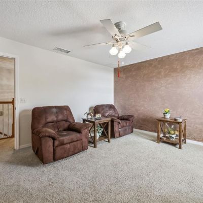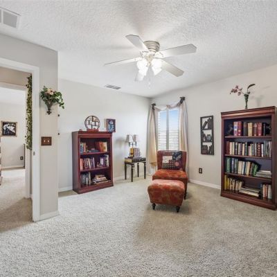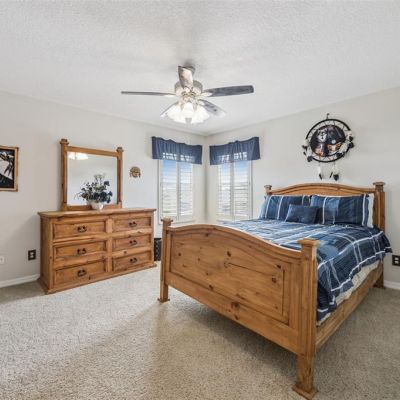 Ceiling Fan(s), Crown Molding, Eating Space In Kitchen, High Ceilings, Kitchen/Family Room Combo, PrimaryBedroom Upstairs, Solid Wood Cabinets, Stone Counters, Thermostat, Walk-In Closet(s)