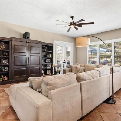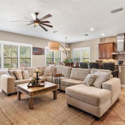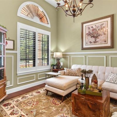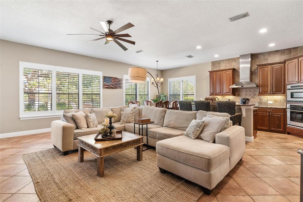 Ceiling Fan(s), Crown Molding, High Ceilings, Open Floorplan, Solid Surface Counters, Solid Wood Cabinets, Wet Bar, Window Treatments