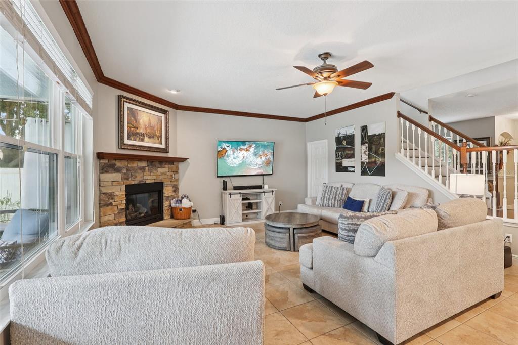Ceiling Fan(s), Crown Molding, Eating Space In Kitchen, Open Floorplan, Solid Surface Counters, Solid Wood Cabinets, Walk-In Closet(s)