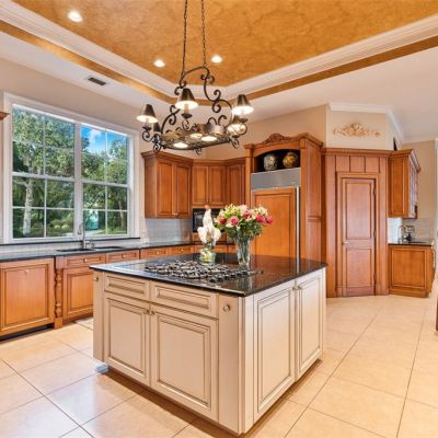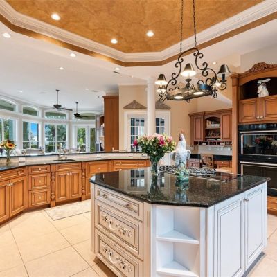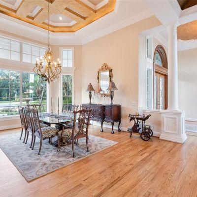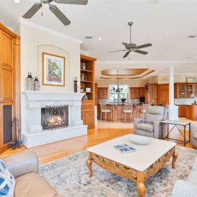 Ceiling Fan(s), Central Vacuum, Coffered Ceiling(s), Crown Molding, Eating Space In Kitchen, High Ceilings, Kitchen/Family Room Combo, Open Floorplan, Primary Bedroom Main Floor, Split Bedroom, Stone Counters, Thermostat, Tray Ceiling(s), Walk-In Closet(s)