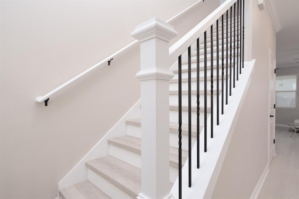 Ceiling Fan(s), Crown Molding, Eating Space In Kitchen, High Ceilings, Kitchen/Family Room Combo, Open Floorplan, PrimaryBedroom Upstairs, Smart Home, Solid Wood Cabinets, Split Bedroom, Stone Counters, Thermostat, Walk-In Closet(s), Window Treatments