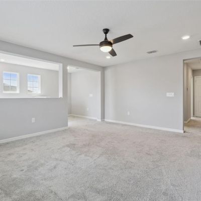 Ceiling Fan(s), Eating Space In Kitchen, Kitchen/Family Room Combo, Open Floorplan, PrimaryBedroom Upstairs, Solid Surface Counters, Thermostat, Walk-In Closet(s)