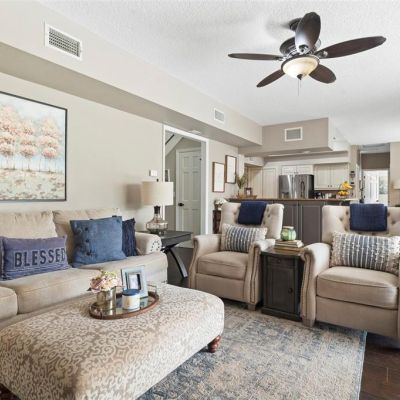 Built-in Features, Ceiling Fan(s), Eating Space In Kitchen, High Ceilings, Kitchen/Family Room Combo, Primary Bedroom Main Floor, Solid Surface Counters, Stone Counters, Walk-In Closet(s)