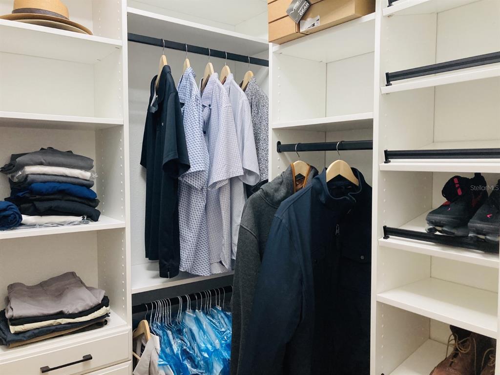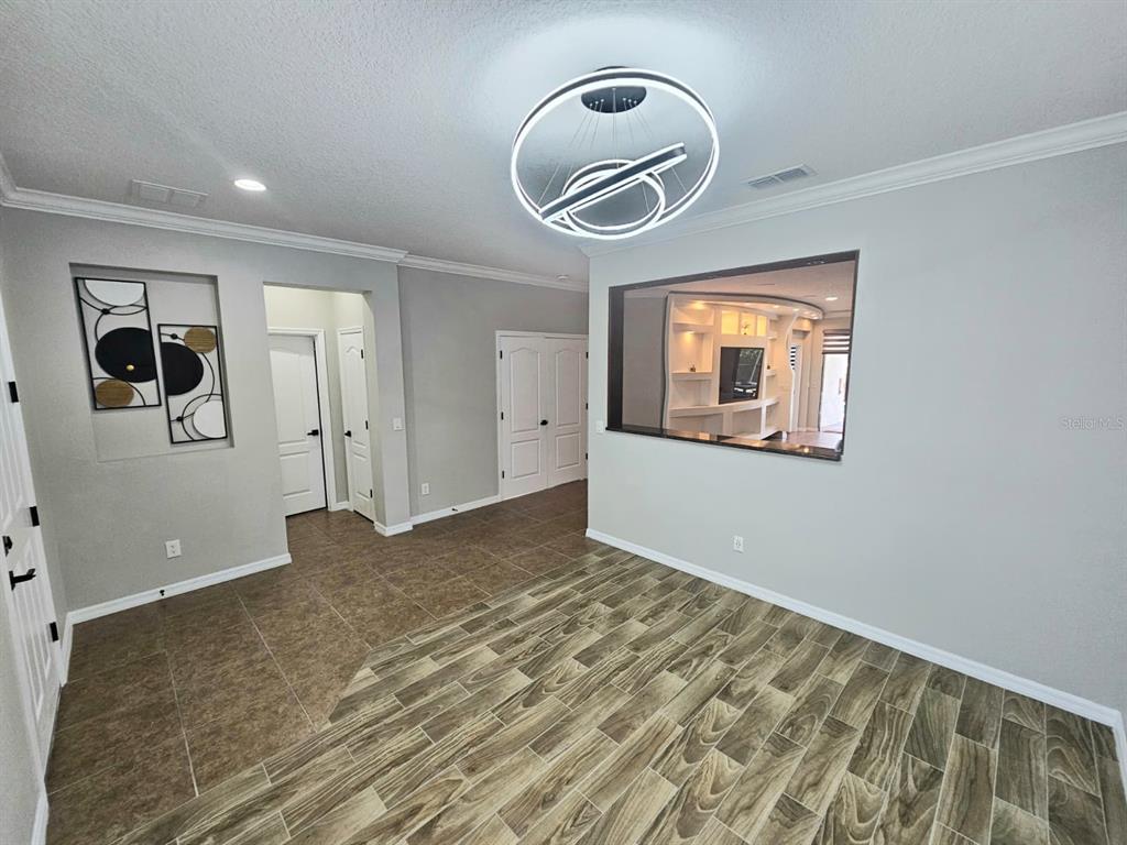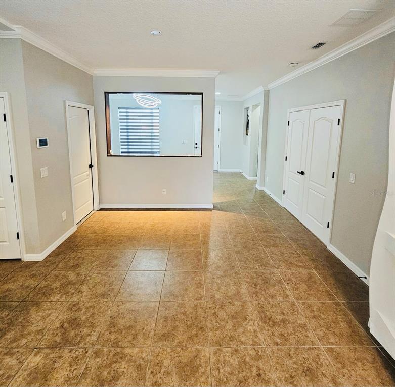 Ceiling Fan(s), Crown Molding, High Ceilings, Kitchen/Family Room Combo, Open Floorplan, Pest Guard System, Primary Bedroom Main Floor, Smart Home, Solid Wood Cabinets, Thermostat, Walk-In Closet(s), Window Treatments