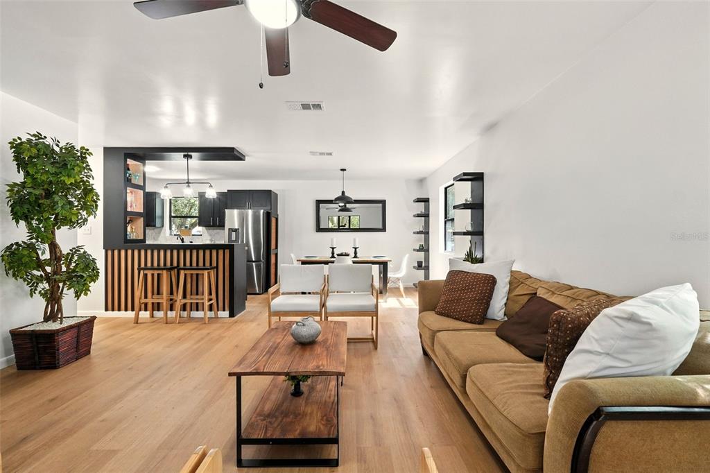 Built-in Features, Ceiling Fan(s), Eating Space In Kitchen, Living Room/Dining Room Combo, Open Floorplan, Primary Bedroom Main Floor, Solid Surface Counters, Thermostat, Walk-In Closet(s)
