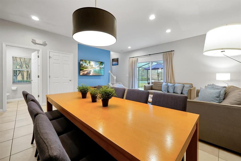 Living Room/Dining Room Combo, Open Floorplan, PrimaryBedroom Upstairs, Stone Counters, Window Treatments