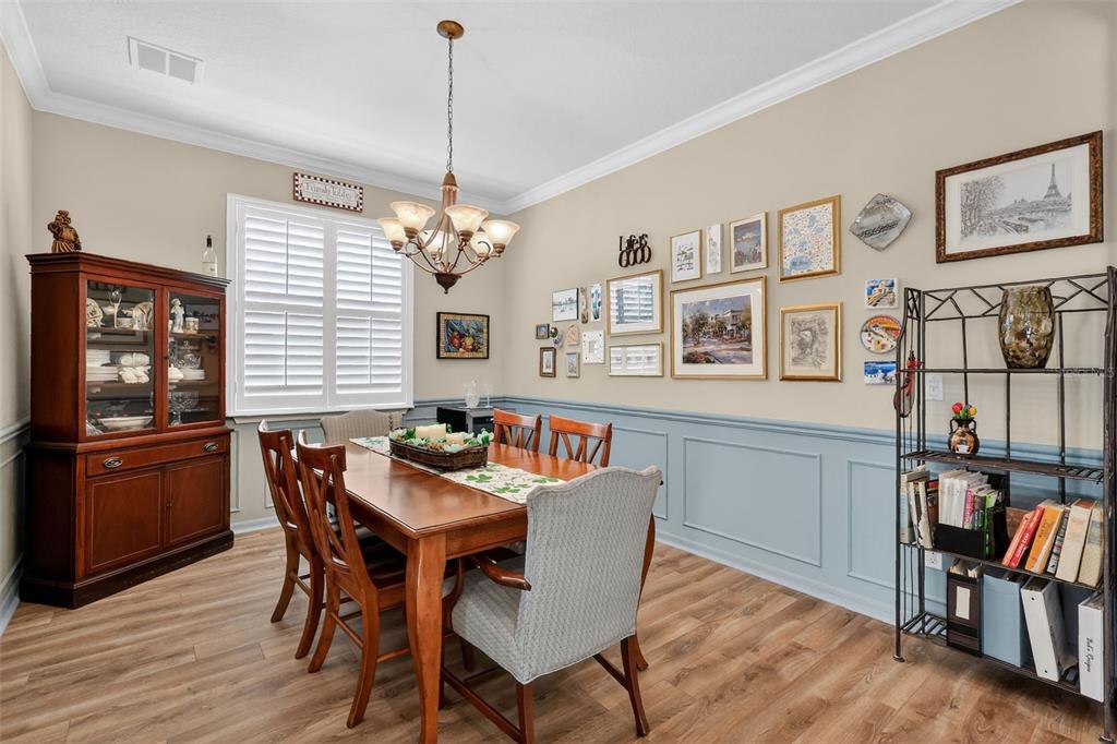 Ceiling Fan(s), Chair Rail, Eating Space In Kitchen, High Ceilings, Kitchen/Family Room Combo, Open Floorplan, Primary Bedroom Main Floor, Solid Wood Cabinets, Split Bedroom, Stone Counters, Thermostat, Walk-In Closet(s), Window Treatments