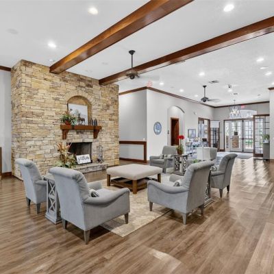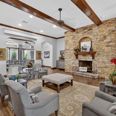 Ceiling Fan(s), Chair Rail, Eating Space In Kitchen, High Ceilings, Kitchen/Family Room Combo, Open Floorplan, Primary Bedroom Main Floor, Solid Wood Cabinets, Split Bedroom, Stone Counters, Thermostat, Walk-In Closet(s), Window Treatments