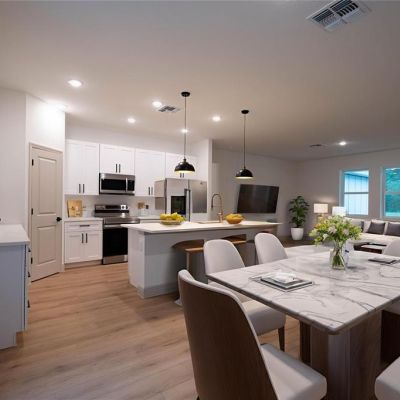 High Ceilings, Kitchen/Family Room Combo, Living Room/Dining Room Combo, Open Floorplan, Primary Bedroom Main Floor, Solid Surface Counters, Thermostat, Walk-In Closet(s)