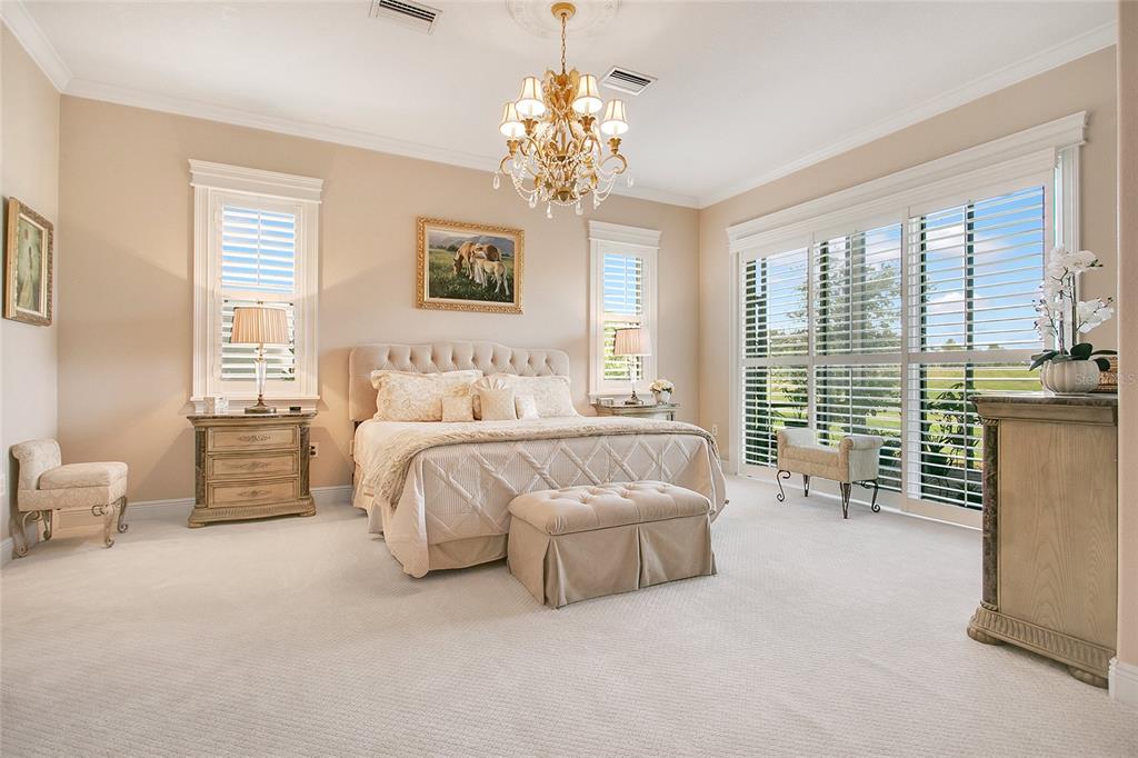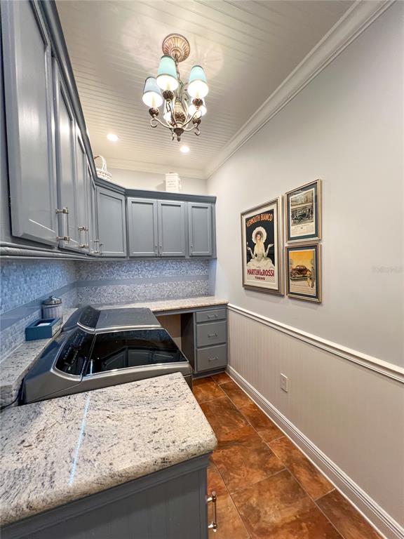 Ceiling Fan(s), Chair Rail, Crown Molding, High Ceilings, Kitchen/Family Room Combo, Primary Bedroom Main Floor, Solid Wood Cabinets, Split Bedroom, Stone Counters, Thermostat, Walk-In Closet(s)