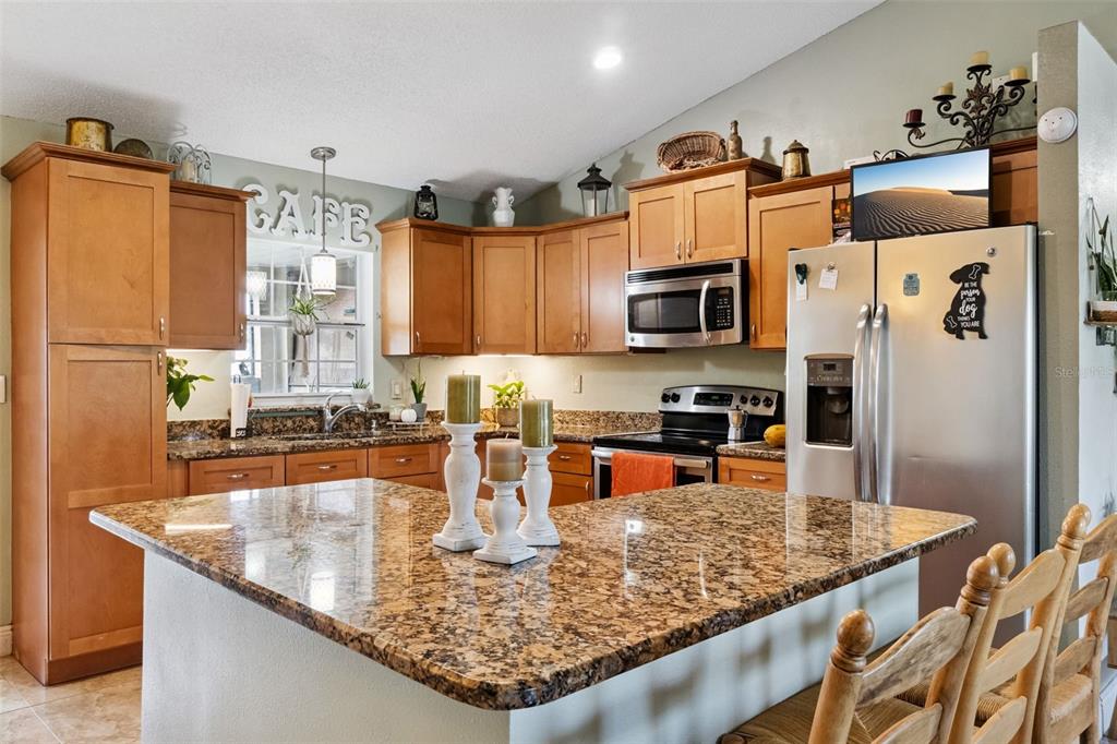Ceiling Fan(s), Kitchen/Family Room Combo, Solid Wood Cabinets, Stone Counters