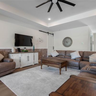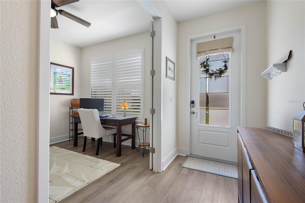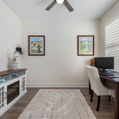 Ceiling Fan(s), High Ceilings, Open Floorplan, Primary Bedroom Main Floor, Solid Surface Counters, Solid Wood Cabinets, Thermostat, Window Treatments