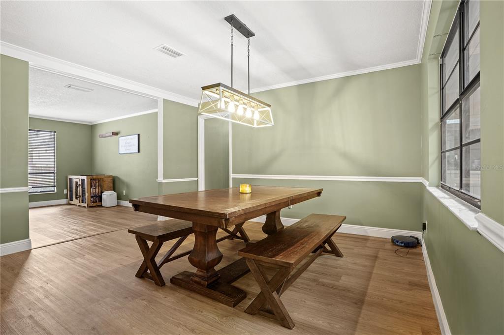 Attic Fan, Ceiling Fan(s), Crown Molding, Eating Space In Kitchen, Thermostat, Walk-In Closet(s)