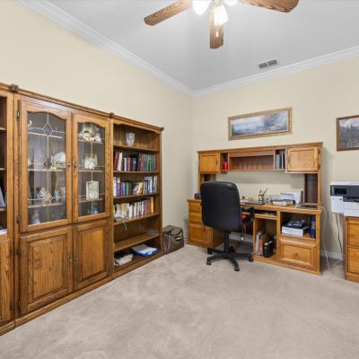 Ceiling Fan(s), Crown Molding, Kitchen/Family Room Combo, Open Floorplan, Primary Bedroom Main Floor, Split Bedroom, Stone Counters, Thermostat, Tray Ceiling(s), Walk-In Closet(s), Window Treatments
