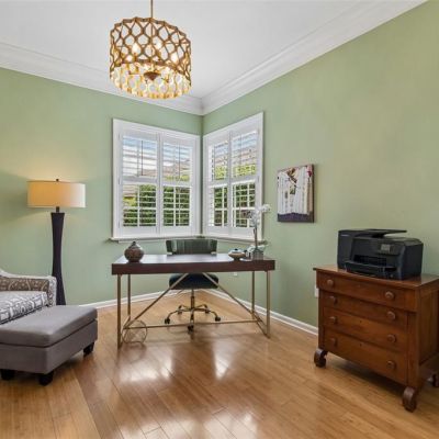 Ceiling Fan(s), Crown Molding, Eating Space In Kitchen, High Ceilings, Open Floorplan, Solid Wood Cabinets, Split Bedroom, Walk-In Closet(s), Window Treatments