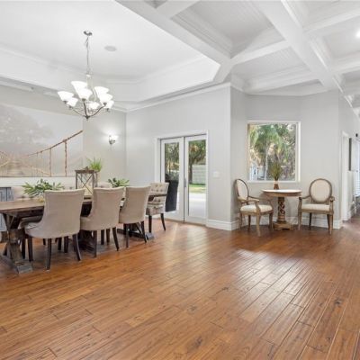 Cathedral Ceiling(s), Ceiling Fan(s), Crown Molding, Dry Bar, Eating Space In Kitchen, Kitchen/Family Room Combo, Open Floorplan, Solid Surface Counters, Thermostat, Tray Ceiling(s), Walk-In Closet(s), Window Treatments