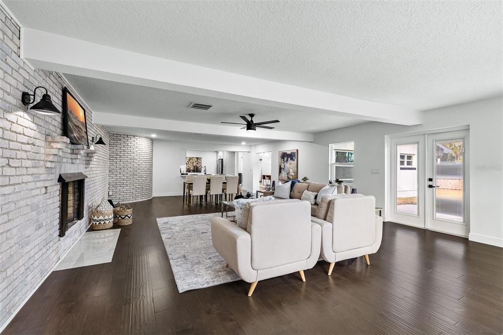 Ceiling Fan(s), Eating Space In Kitchen, Kitchen/Family Room Combo, Living Room/Dining Room Combo, Open Floorplan, Primary Bedroom Main Floor, Solid Surface Counters