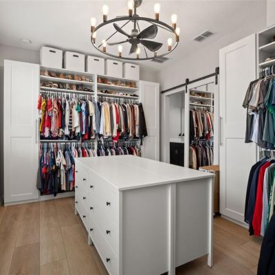 Ceiling Fan(s), Eating Space In Kitchen, High Ceilings, Kitchen/Family Room Combo, Open Floorplan, Primary Bedroom Main Floor, PrimaryBedroom Upstairs, Solid Surface Counters, Solid Wood Cabinets, Walk-In Closet(s)
