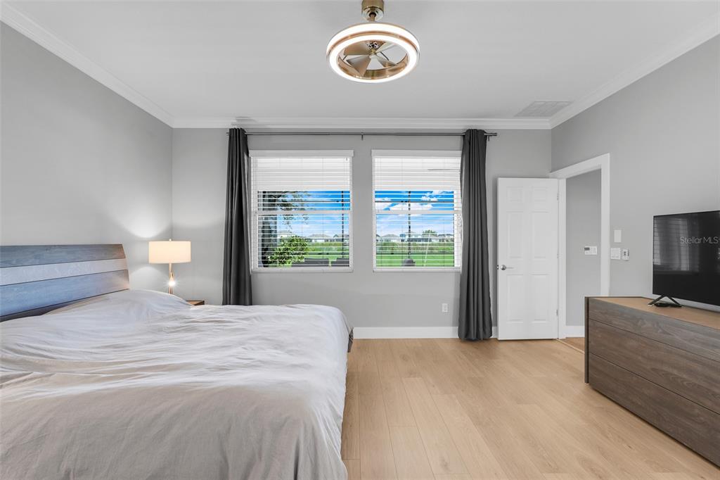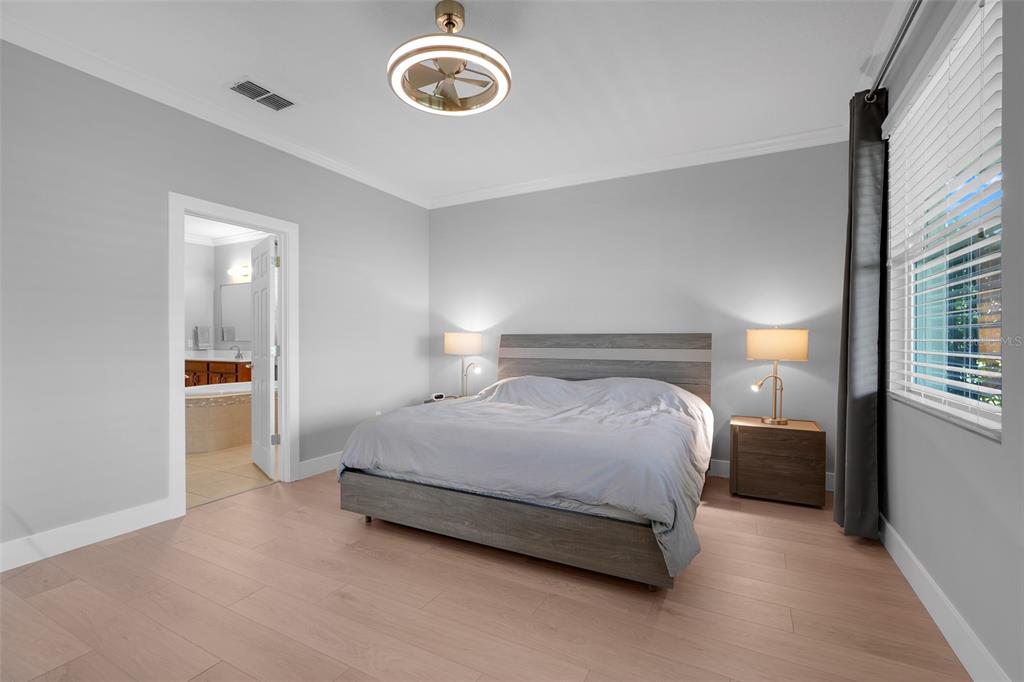 Ceiling Fan(s), Coffered Ceiling(s), Crown Molding, Open Floorplan, Split Bedroom, Stone Counters, Walk-In Closet(s), Window Treatments