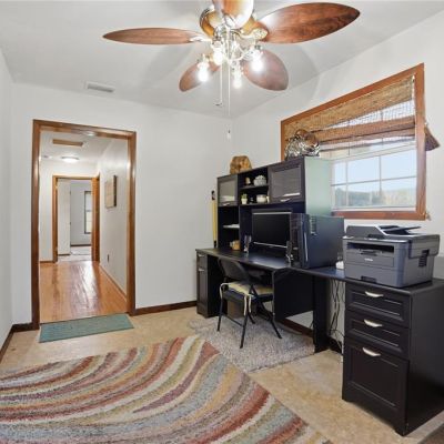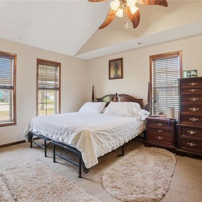 Ceiling Fan(s), High Ceilings, Living Room/Dining Room Combo, Primary Bedroom Main Floor, Solid Surface Counters, Solid Wood Cabinets, Thermostat