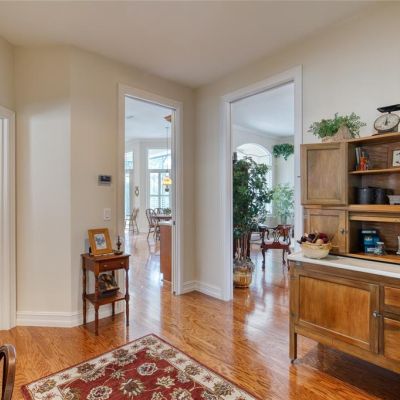 Ceiling Fan(s), Crown Molding, Eating Space In Kitchen, High Ceilings, Living Room/Dining Room Combo, Open Floorplan, Primary Bedroom Main Floor, Solid Surface Counters, Solid Wood Cabinets, Split Bedroom, Thermostat, Tray Ceiling(s), Walk-In Closet(s), Window Treatments