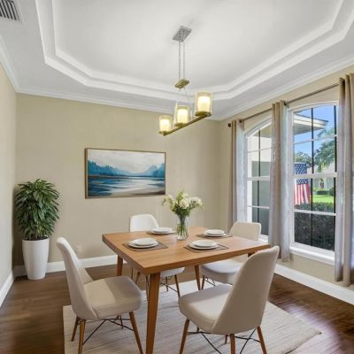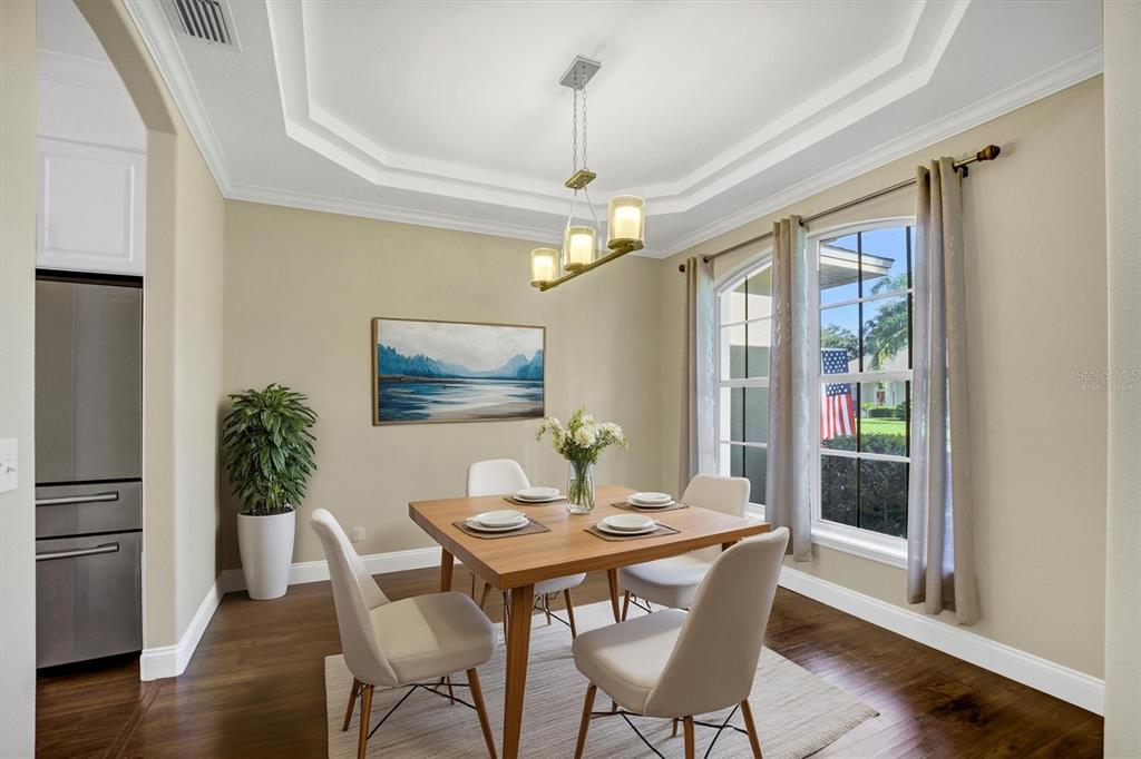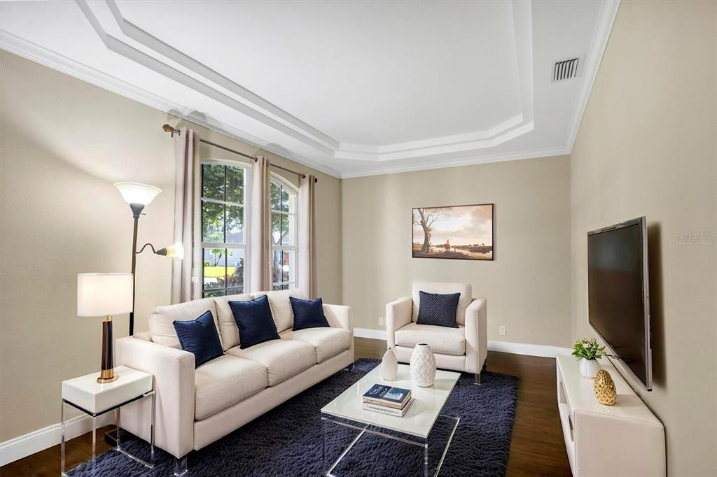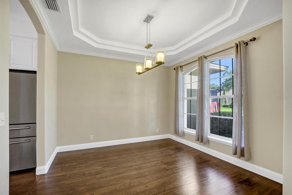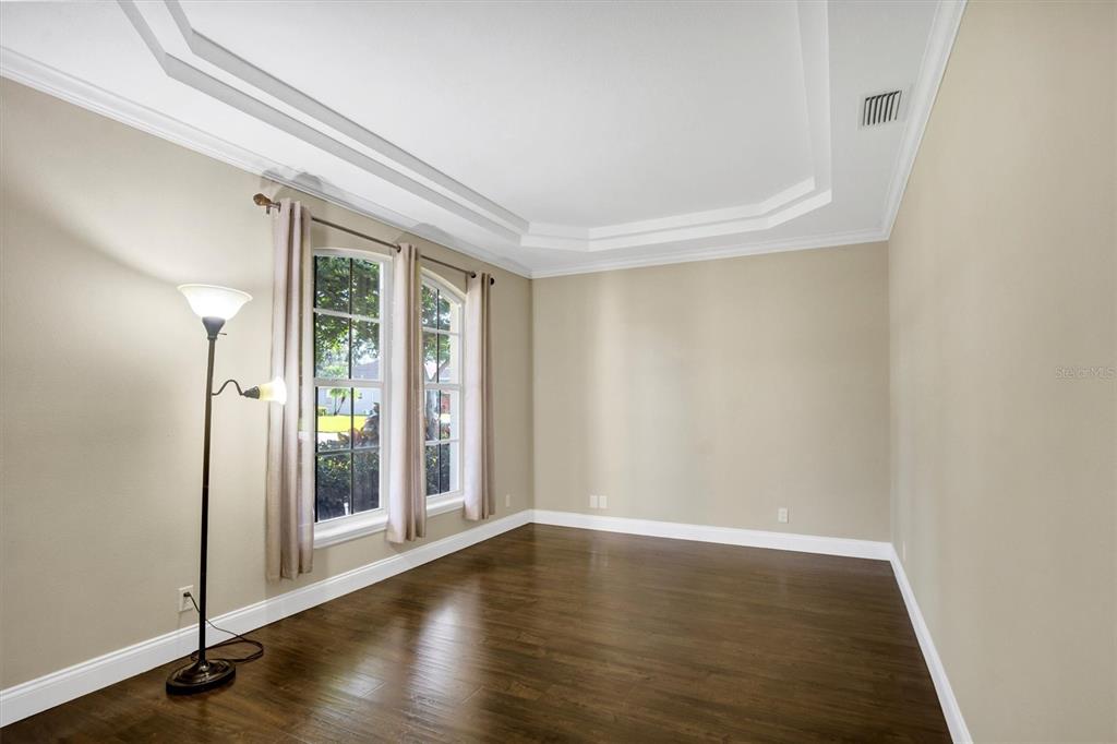 Attic Ventilator, Ceiling Fan(s), Crown Molding, Eating Space In Kitchen, High Ceilings, In Wall Pest System, Kitchen/Family Room Combo, Open Floorplan, Primary Bedroom Main Floor, Split Bedroom, Thermostat, Tray Ceiling(s), Walk-In Closet(s), Window Treatments