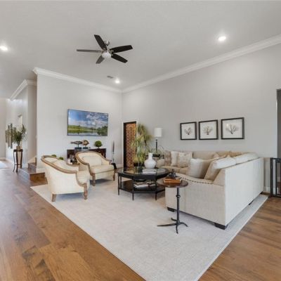 Built-in Features, Ceiling Fan(s), Crown Molding, Elevator, High Ceilings, Open Floorplan, Primary Bedroom Main Floor, Smart Home, Solid Wood Cabinets, Stone Counters, Walk-In Closet(s)