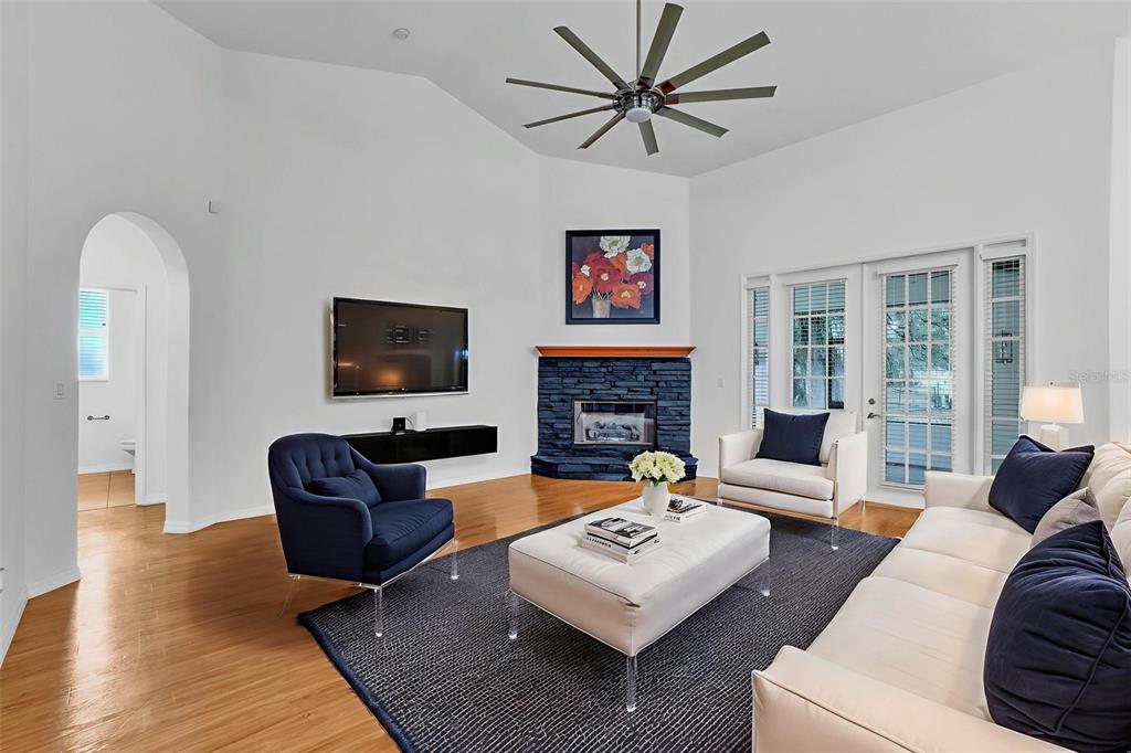 Built-in Features, Ceiling Fan(s), Crown Molding, Eating Space In Kitchen, High Ceilings, Kitchen/Family Room Combo, Open Floorplan, Primary Bedroom Main Floor, Solid Wood Cabinets, Split Bedroom, Thermostat, Tray Ceiling(s), Vaulted Ceiling(s), Walk-In Closet(s), Window Treatments
